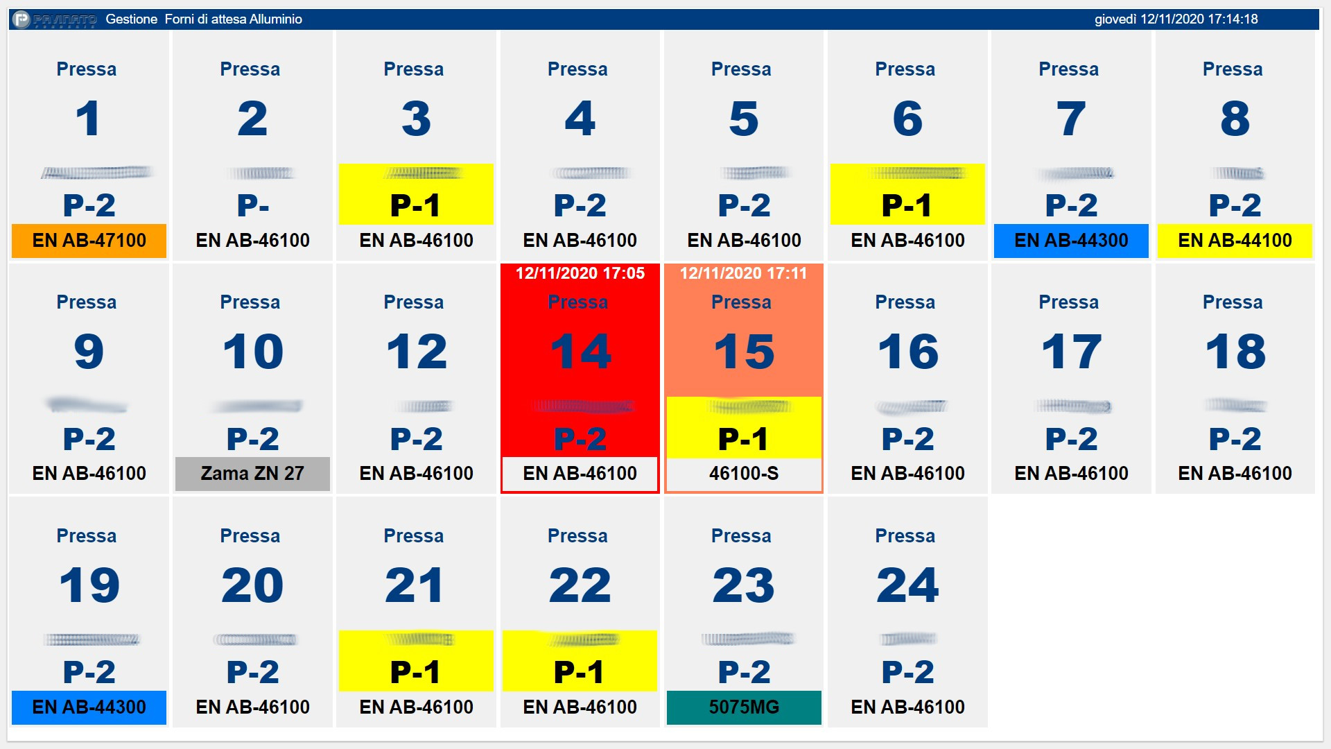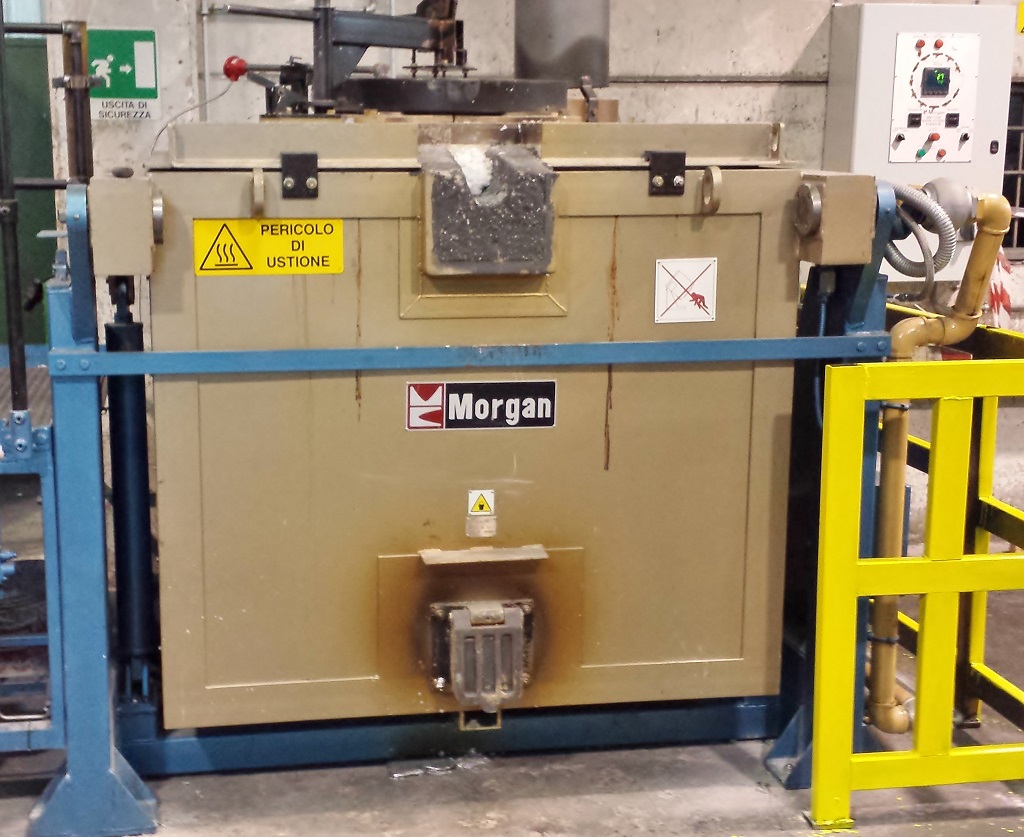 - Le leghe di alluminio normalmente utilizzate (la UNI EN AB-46100 e la UNI EN AB-47100), vengono portate allo stato liquido utilizzando due forni fusori a bacino di marca Striko Westofen.